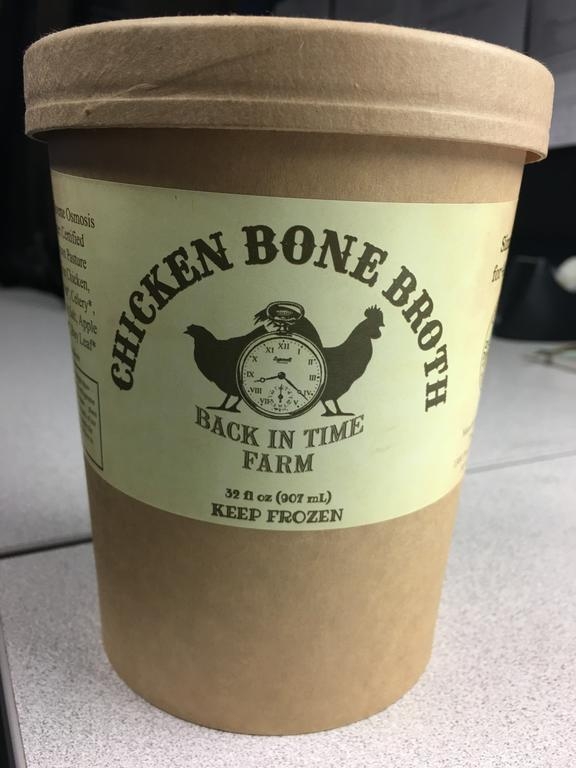 Bone Broth is a super food from way back in time and frozen to preserve all the nutrition. Created by Cultured Traditions and simmered for 48 hours. This recipe includes feet, skins, backs, necks, organic apple cider vinegar, organic vegetables, organic herbs, organic spices and pink Himalayan salt. The Soy Free “Certified Naturally Grown” Back in Time birds are locally grown in Barrow county on the “Back in Time” family farm. They are provided an Organic feed supplemented with locally grown Organic wheat and locally grown Organic corn and watered with reclaimed rain water to produce a delicious, healthy and clean chicken for your family. Our chickens are very happy because they live in bottomless portable chicken tractors out in the fields with fresh air and sunlight and are moved every day to new grass and bugs. They are never given antibiotics, growth hormones or chlorine from a city water system.