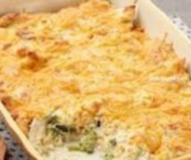 Delicious chicken broccoli casserole made with chicken breast, broccoli, cream of chicken soup, cream of mushroom soup, mayonnaise, ritz crackers, cheese, curry powder, and lemon juice.