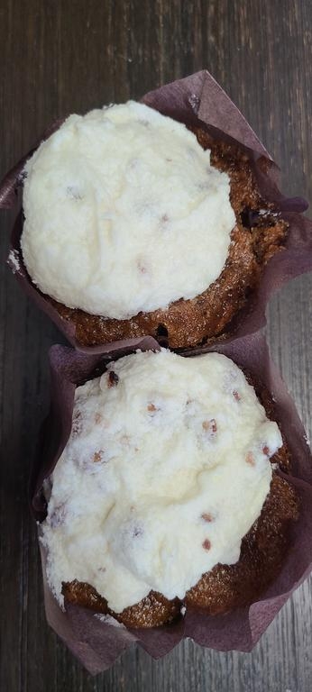 Frosting: Fromage Blanc, powdered sugar, pecans, butter, vanilla.