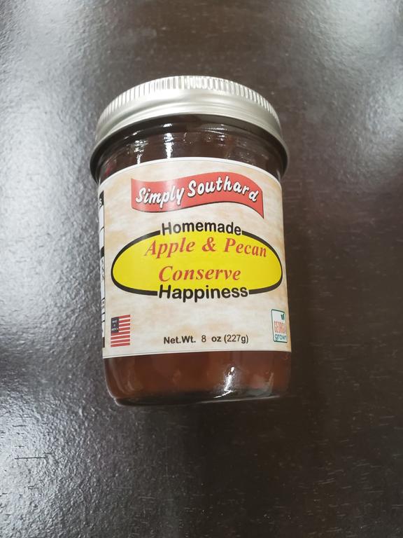 Apples, Pecans, brown sugar, cinnamon, nutmeg makes a wonderful conserve. Reminds you of the apple pie filling that Mom use to make. Great on biscuits, toast, and bagels.