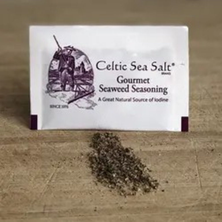 Our Gourmet Seaweed Seasoning blend is a delicious, nutritious, all-purpose seasoning that is naturally high in Iodine. Our proprietary blend starts with Fine Ground Celtic Sea Salt® and adds four types of Organic and Wildcrafted sea vegetables to create a unique, savory flavor that is also surprisingly versatile. Red Shiso, garlic, onion and lemon are added to complete the nuanced flavor profile, making this the perfect seasoning for every dish.