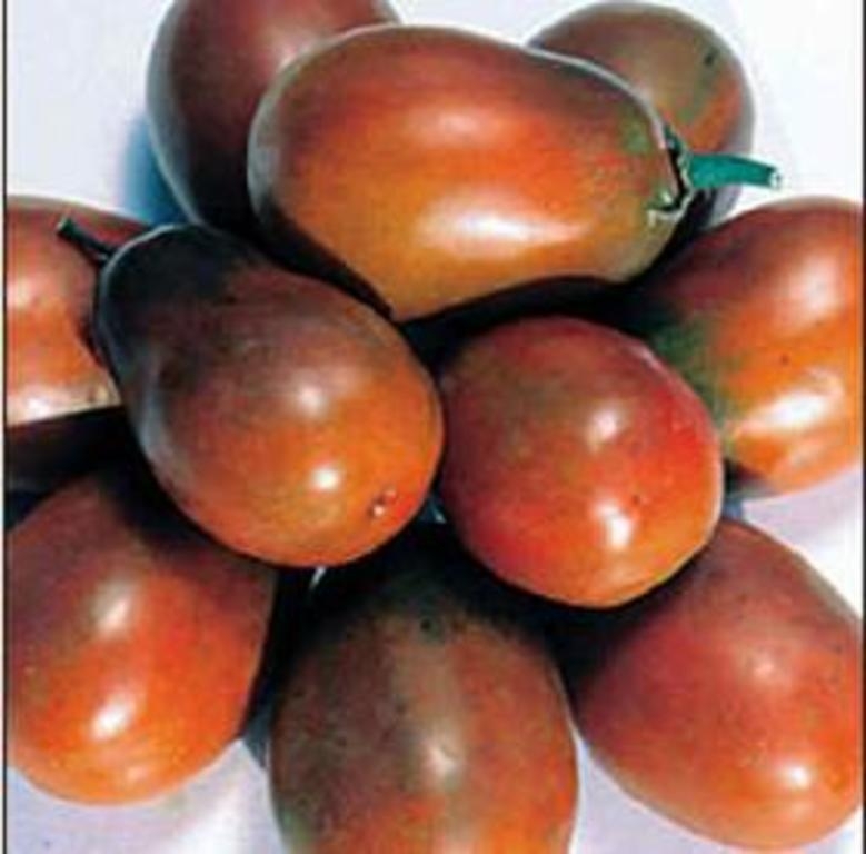 These are Non-GMO Untreated seeds. Clusters of brown-red fruits, small plum size 1 x 1 1/2″, juicy dark burgundy interior, indet, 70 days. Germinating Tips Temperature 75-85 Degrees Fahrenheit.