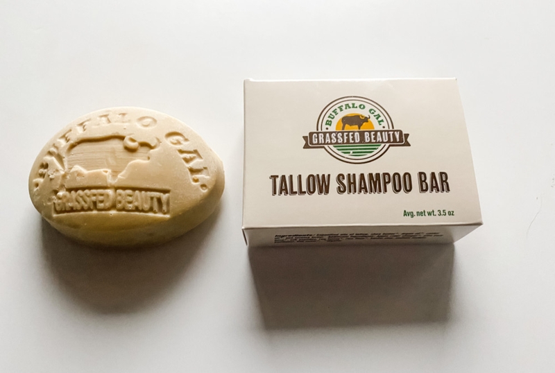 Tallow Shampoo Ingredients: Saponified oils: tallow, shea butter*, argan oil*, castor oil*, and tucuma butter. Additional ingredients: Apple cider vinegar*, aloe vera juice*, silk peptides, raw honey*, GF rice flour*, kaolin clay, sodium lactate, panthenol, and neem*. *organic